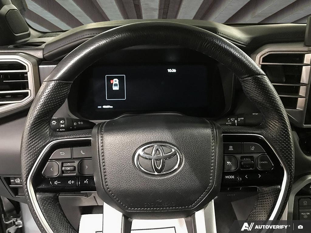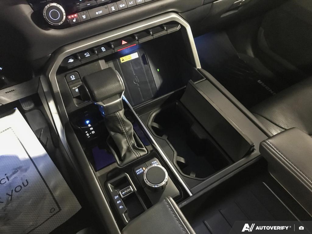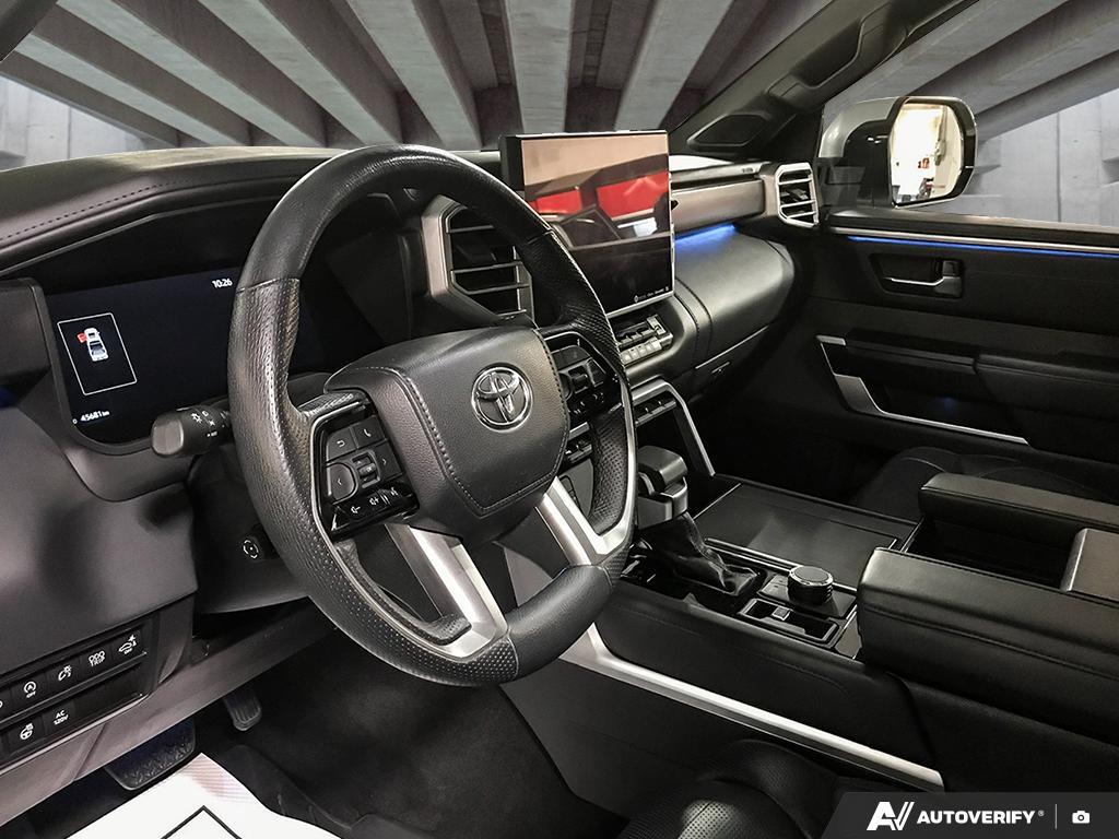 Discover premium strength and luxury with this 2024 Toyota Tundra CrewMax Platinum, now available at West Edmonton Mall Toyota in Edmonton, Alberta. With 45,680 kilometers, this full-size pickup offers proven performance, advanced technology, and upscale comfort, making it an excellent choice for drivers seeking a refined yet capable truck for work, travel, and everyday driving. The 2024 Toyota Tundra CrewMax Platinum is powered by Toyotas robust i-FORCE 3.5L twin-turbo V6 engine, delivering impressive horsepower and torque while maintaining strong efficiency for a full-size truck. Matched with a responsive automatic transmission and 4x4 capability, this Tundra is built to handle demanding road conditions, heavy-duty tasks, and year-round Alberta driving with confidence. The Platinum trim elevates the driving experience with a smooth, controlled ride and outstanding towing and payload capability when properly equipped. Inside the spacious CrewMax cab, the Platinum model offers a luxury-focused interior designed for comfort and convenience. Premium leather seating, heated and ventilated front seats, advanced climate control, and a large touchscreen infotainment system with seamless smartphone integration create an upscale environment for both driver and passengers. Toyota Safety Sense comes standard, providing advanced driver-assist technologies that enhance confidence and peace of mind on every drive. Combining bold exterior styling, refined interior appointments, and Toyotas legendary reliability, this 2024 Toyota Tundra CrewMax Platinum stands out in the full-size pickup segment. Visit West Edmonton Mall Toyota in Edmonton, AB, to explore this well-equipped and road-proven truck and see why the Toyota Tundra remains a top choice for Canadian truck owners.